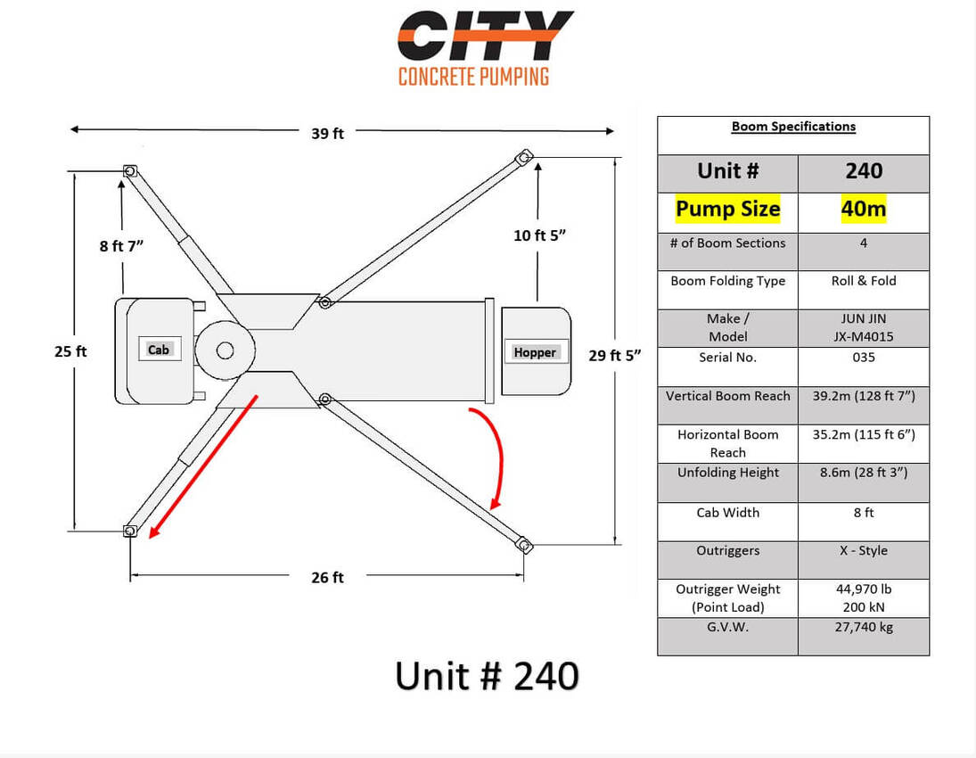 One of 6 mid-size boom pumps that we operate, the 40 meter platform is big enough to service most suburban developments, from home foundations to low-rise condo projects and townhomes. The smaller footprint also allows our 40 meter units to access tighter locations that some of our bigger units just can’t access. We use our mid-size pumps on projects such as the Leigh Road overpass project in Colwood and Colwood Corners shopping mall redevelopment.