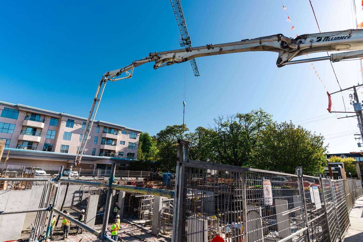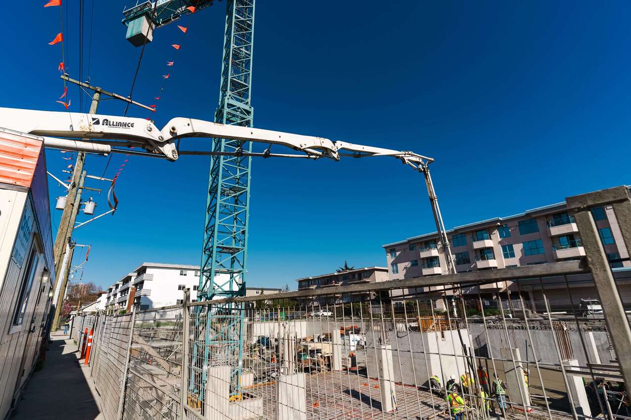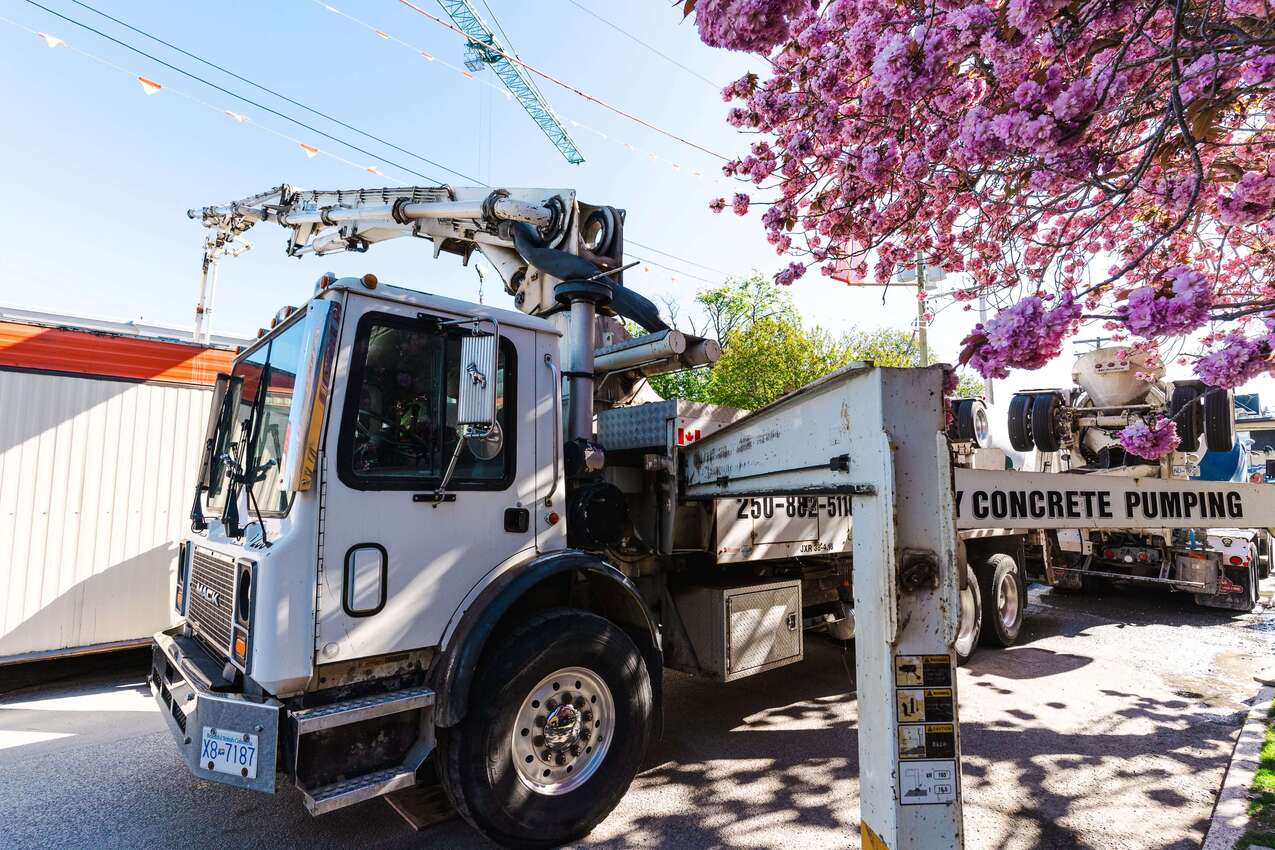 Another of our mid-size boom pumps that we operate, the 38 meter platform is big enough to service most suburban developments, from home foundations to low-rise condo projects and townhomes. The smaller footprint of the Alliance rig also allows our this unit to access tighter locations that some of our bigger units just can’t access. We use our mid-size pumps on projects such as the Leigh Road overpass project in Colwood and Colwood Corners shopping mall redevelopment.