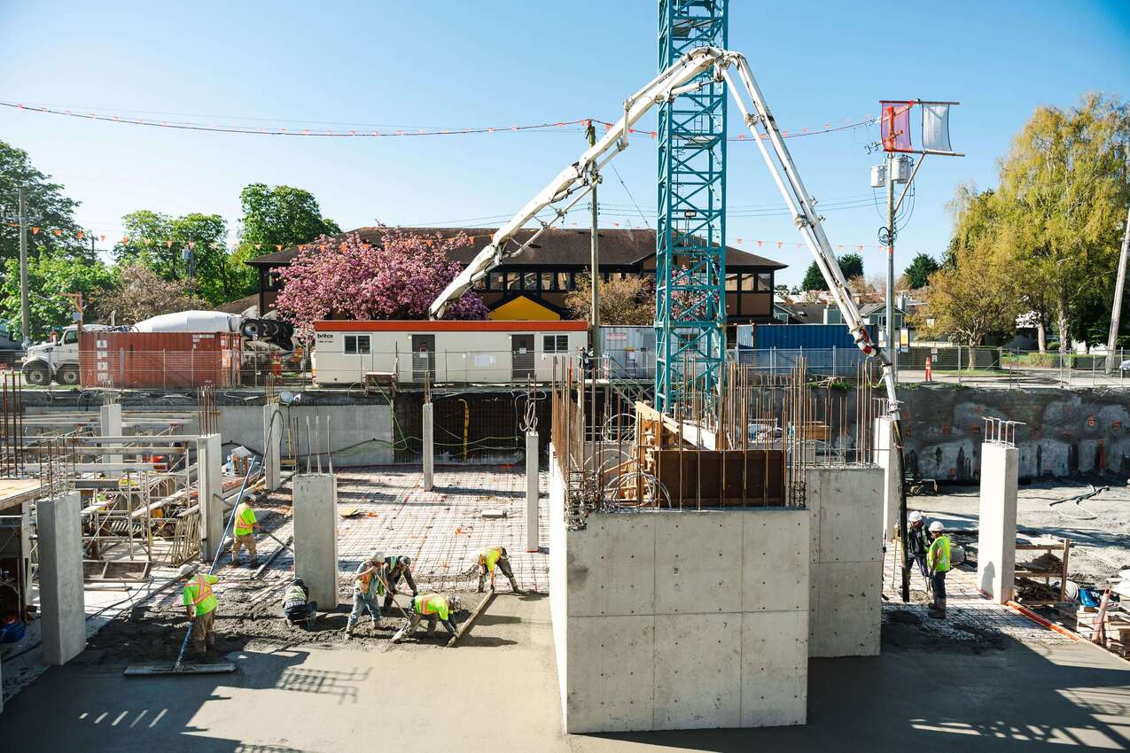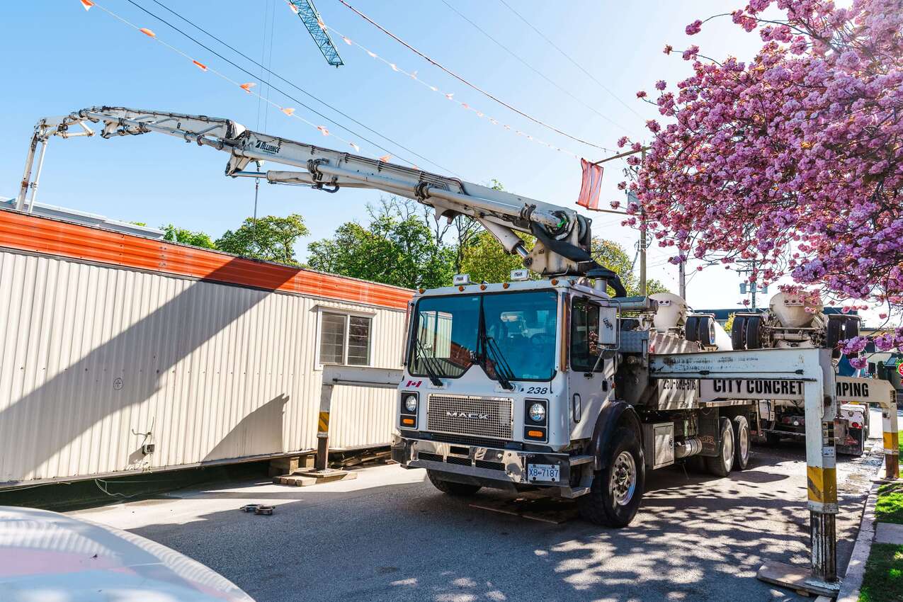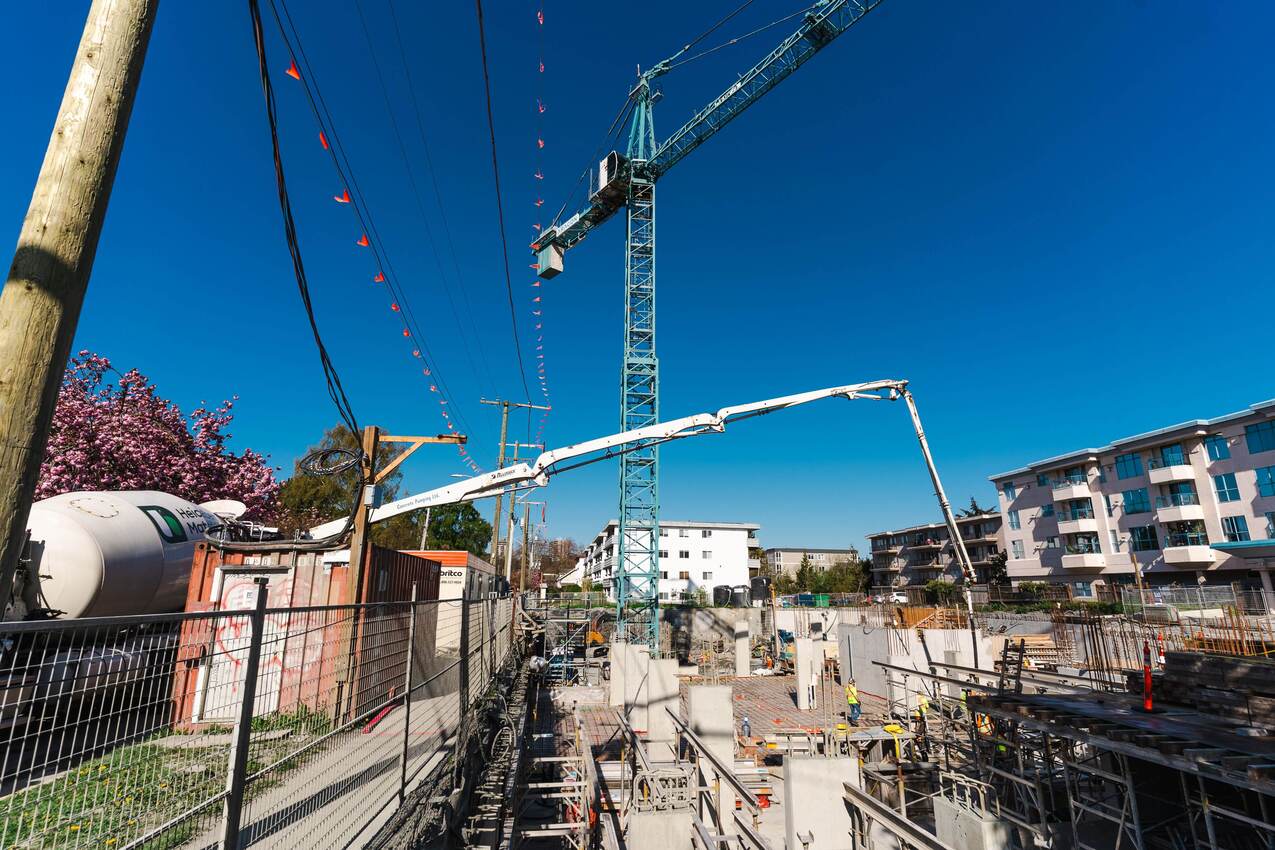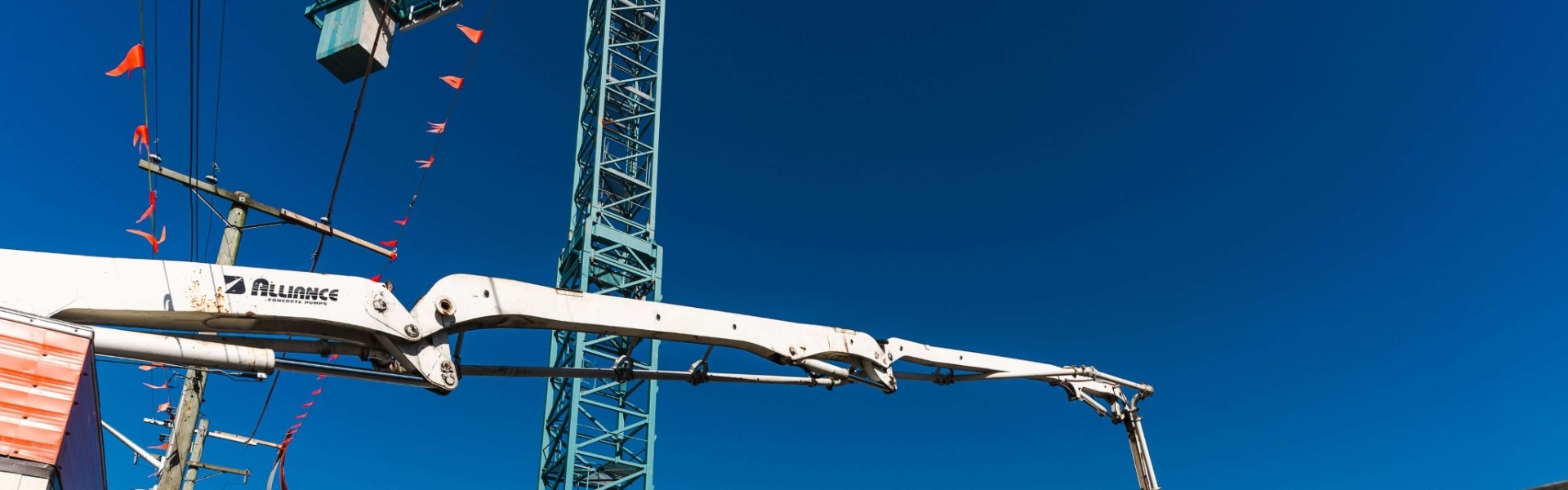 Another of our mid-size boom pumps that we operate, the 38 meter platform is big enough to service most suburban developments, from home foundations to low-rise condo projects and townhomes. The smaller footprint of the Alliance rig also allows our this unit to access tighter locations that some of our bigger units just can’t access. We use our mid-size pumps on projects such as the Leigh Road overpass project in Colwood and Colwood Corners shopping mall redevelopment.