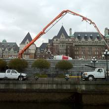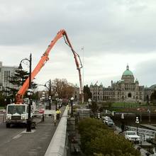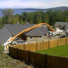 The Jun Jin 50 meter pump is one of our bigger units, perfect for situations that require a high vertical reach or a long horizontal extension. Unit 111 is able to reach over a house in Oak Bay to pour a patio as easily as work a high-rise in downtown Victoria. Pumping services for The Capital Park project in James Bay kept Unit 111 busy for months, including a 15 story tower for The Tapestry on Bellville – ideal work for the 50 meter platform.