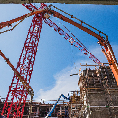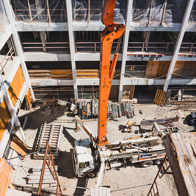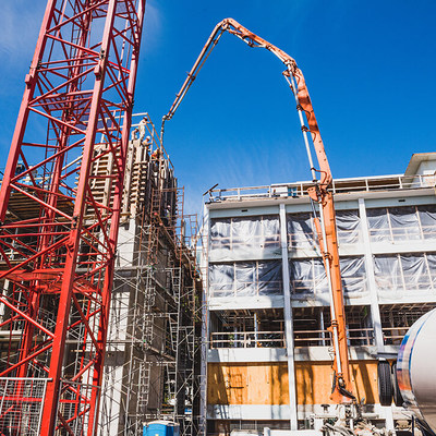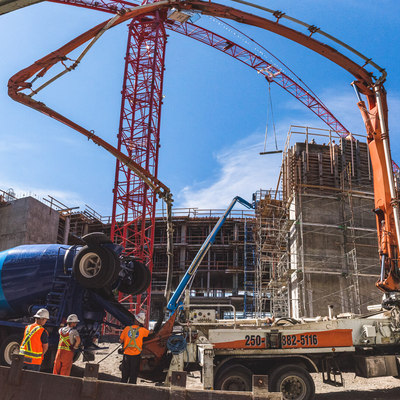 We worked strategically with the developer to deliver concrete in three different ways: lower levels are done by line pump, mid levels done by pumper truck, upper levels done by crane and bucket. A challenging and rewarding project.
